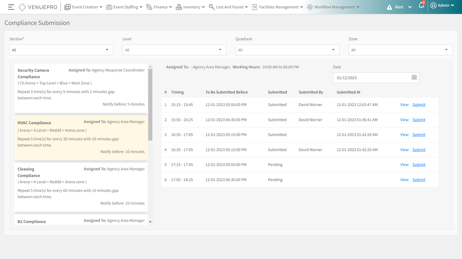One application to take control and ensure specific process actions are undertaken before the doors open on event day to deliver governance, risk assessments, exceptional service and be alerted for non-compliance.