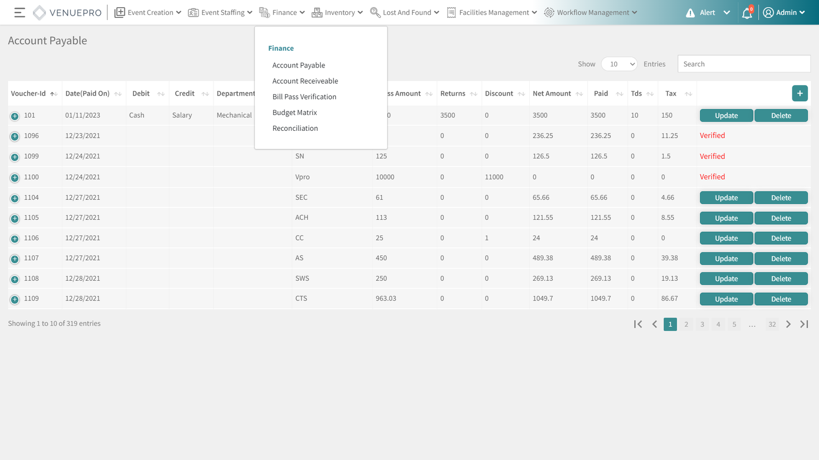 A robust set of financial tools to manage all event based financial requirements including AP, AR, Asset Management, Event Transactions, Reconciliation and Bill Tracking.