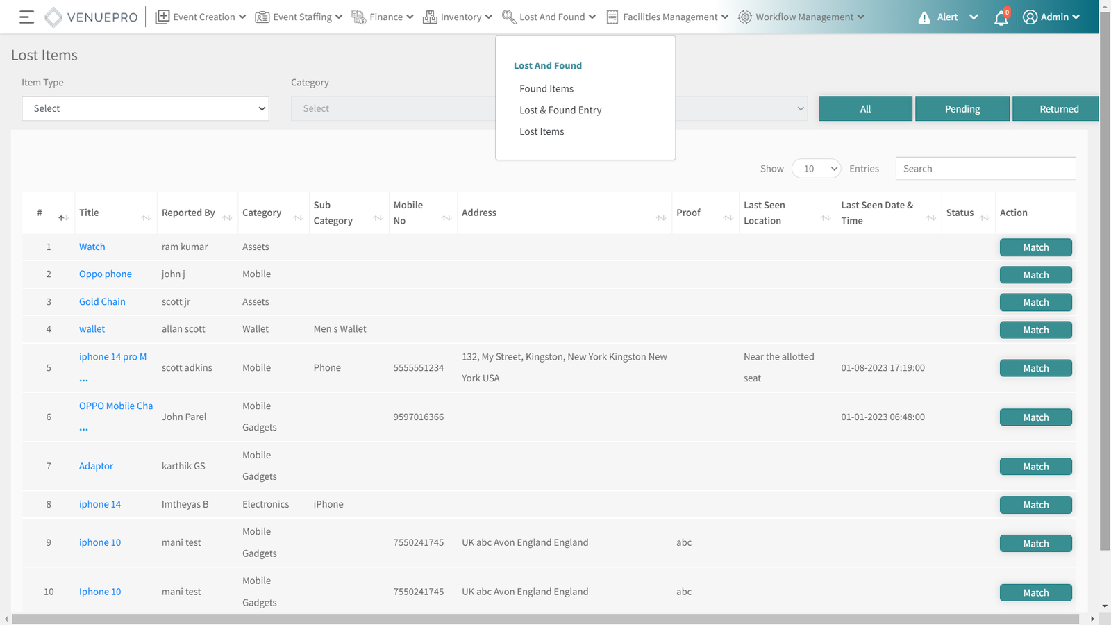 All lost items logged, tracked and stored for future use in one place