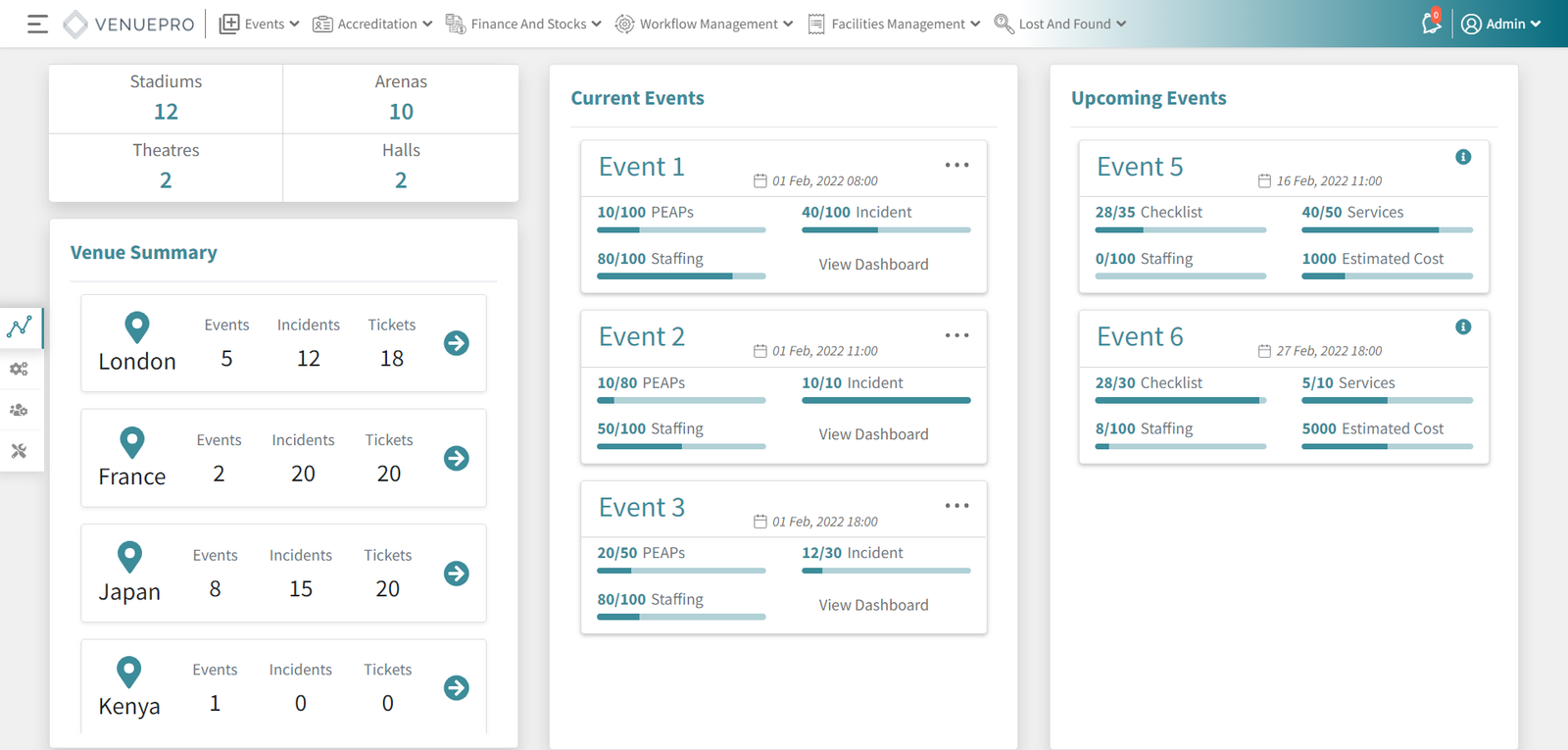 Manage multiple sites including event management, staffing, maintenance, centralised purchase capability, finance & accounting and consolidated reports