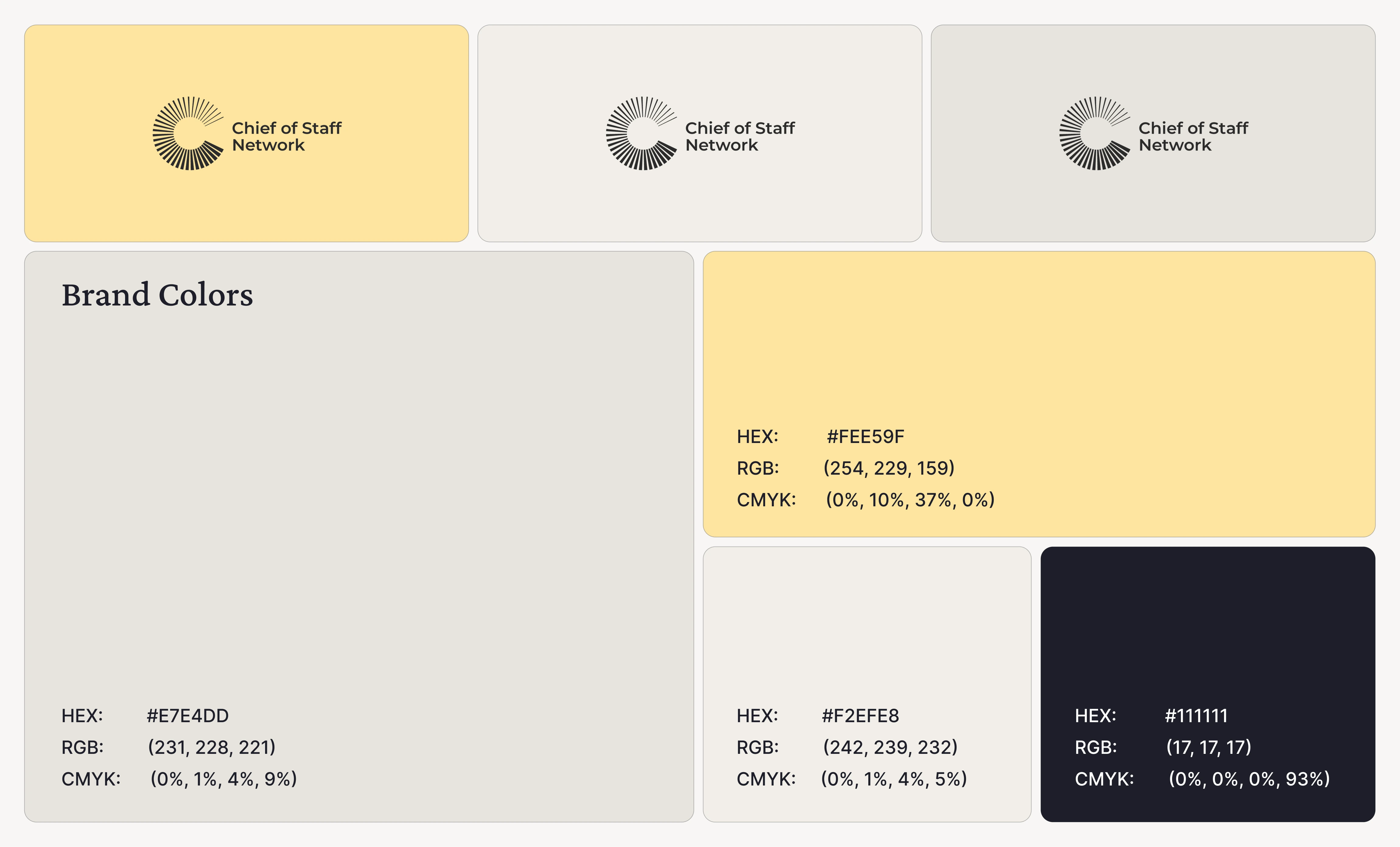 The Chief of Staff Network identity was built to serve as a trusted hub for senior operators. The goal: combine authority with warmth, creating a brand system that feels structured, professional, and approachable.