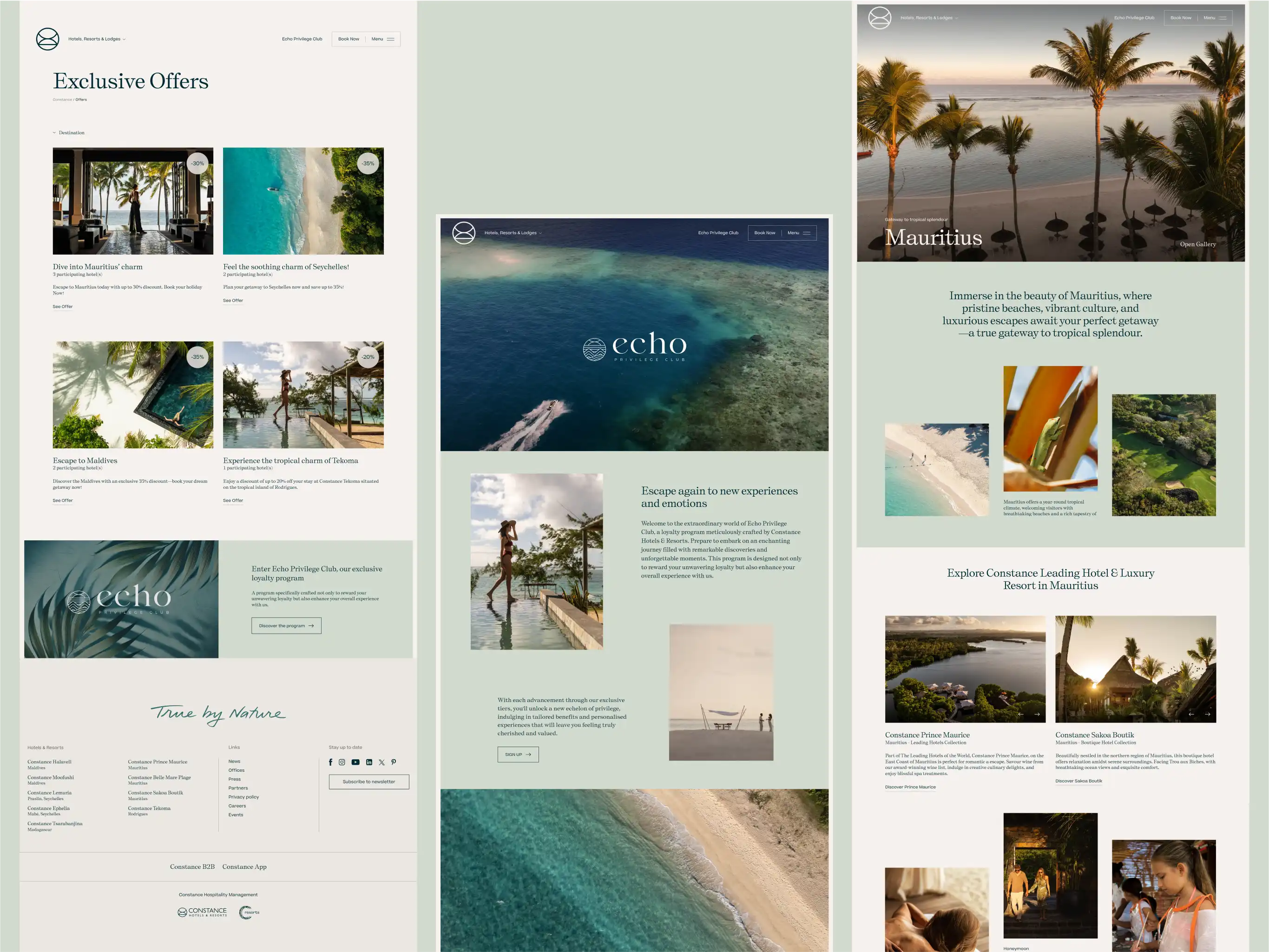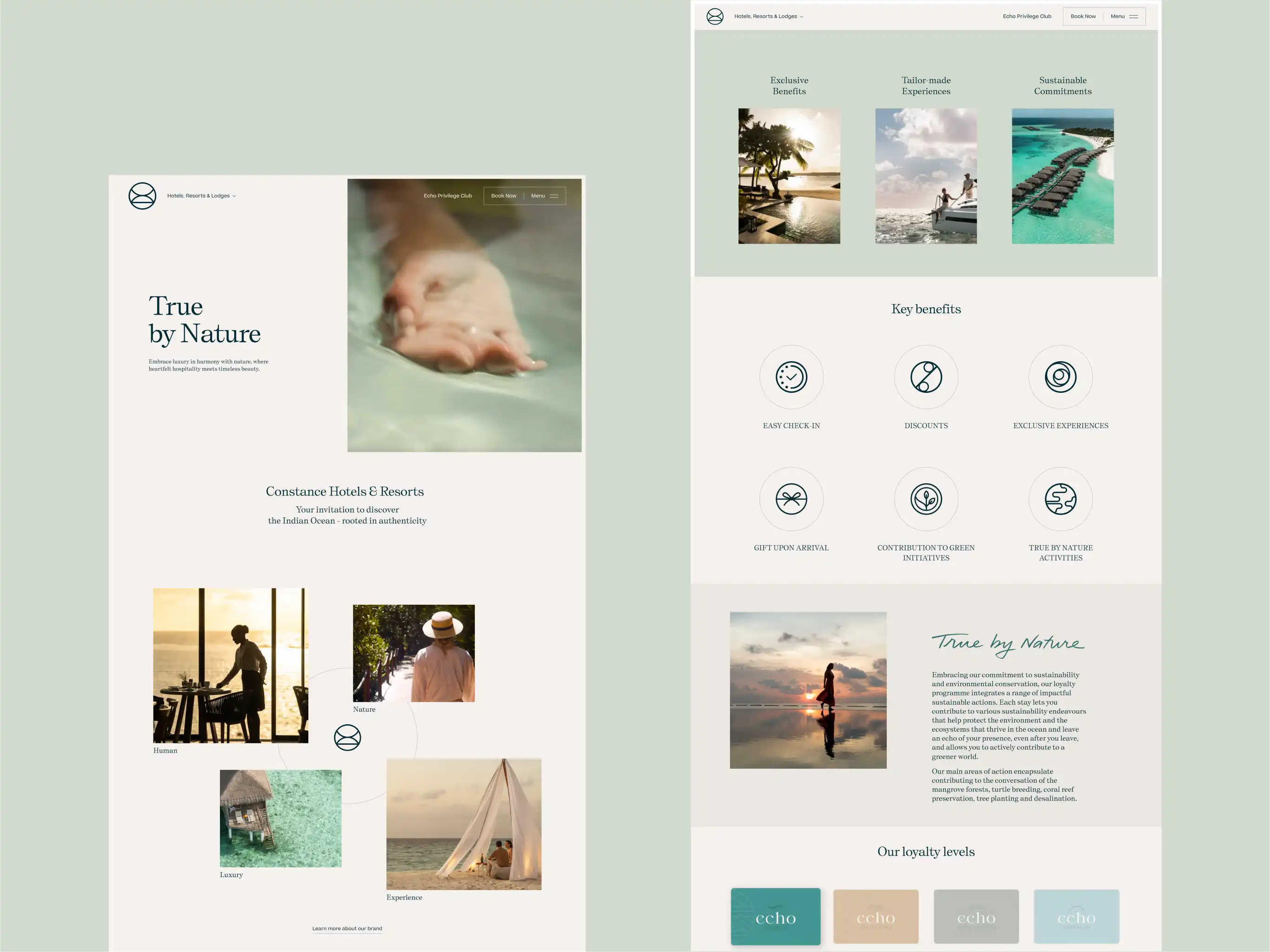 Echo is a luxury membership club built around nature. The site had to reflect that duality: premium but grounded. Calm but clear. Every detail, from color to motion, was crafted to mirror the brand’s “True by Nature” ethos.